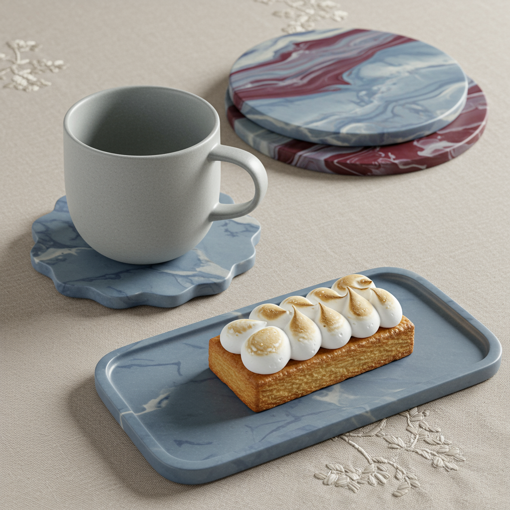 The scallop-edged plate designs produced by Polish brand Branik bring their own personality to the table, drawing inspiration from the dramatic ruffs that were the height of fashion in 16th- and 17th-century Europe. They are part of the Frill range, and are crafted from visually striking types of natural stone, such as veiny Calacatta Viola marble, creamy travertine, and green Amazonite.