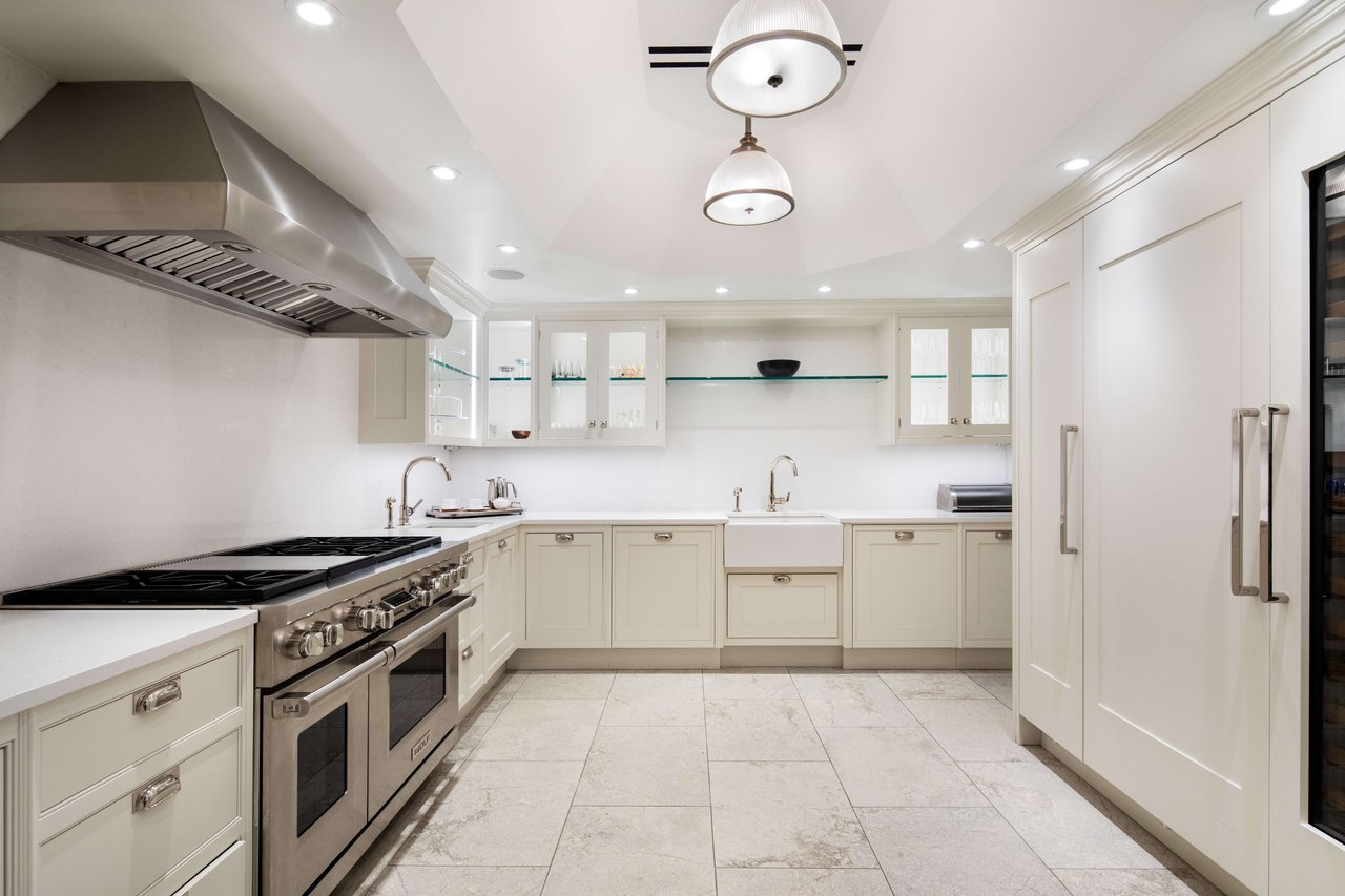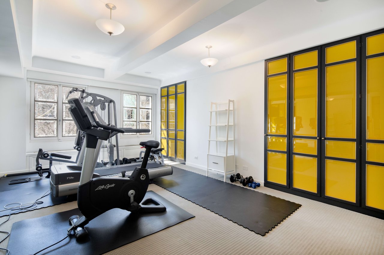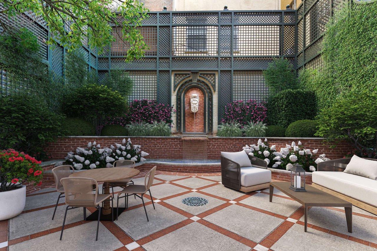Garden Level: A fountained reception area leads to the dramatic Grand Dining Room. The canvas walls are hand painted and inspired from Robert Adam's Etruscan Room in Osterley Park. This spectacular room opens directly into the most beautiful private Garden oasis in all Manhattan. Also enjoy a newly renovated Smallbone Eat-In Kitchen, a Breakfast Room that also opens to the Garden. A Laundry Room is located nearby.