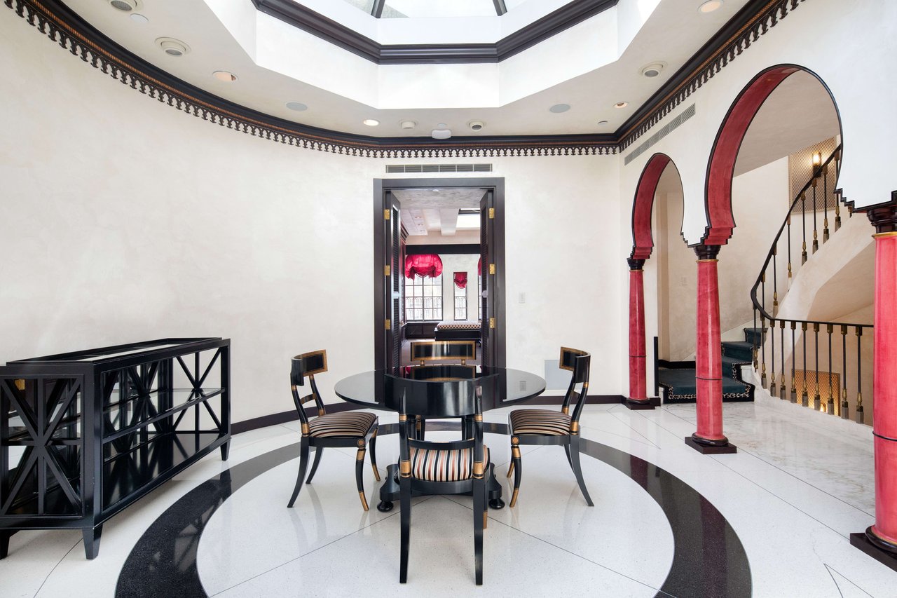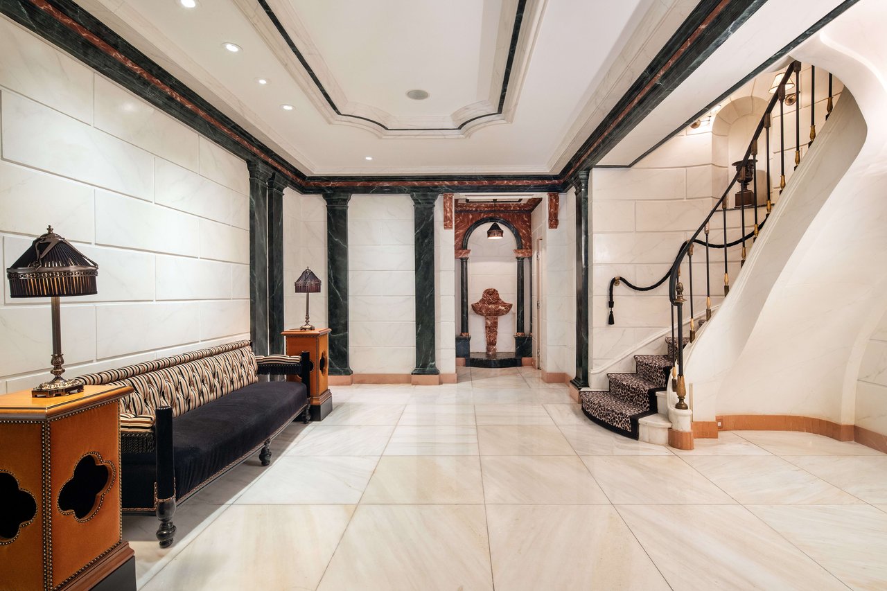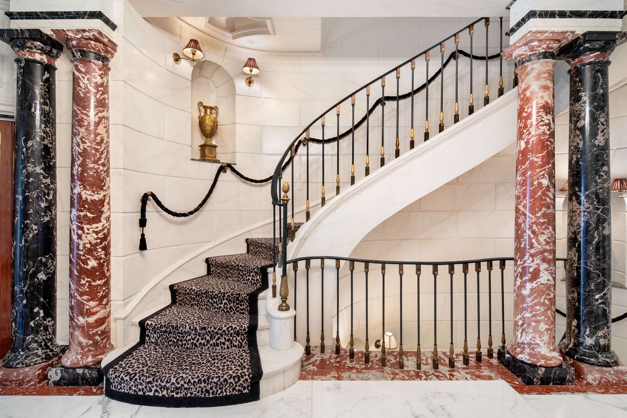Versace, the late fashion tycoon purchased the neoclassical building in 1995 and fully redesigned the interior with the same Italian Baroque style often referenced in his over-the-top couture including intricate Italian Marble floors, painted ceilings and walls, mosaic and Austrian parquet floors, five fireplaces, and opulent Baths. Versace’s genius and vision is revealed over the first 4 floors, each presenting the designer’s legendary taste and permeates the home. The Upper two floors were redesigned in a lighter, more whimsical manner. These levels include terrazzo floorings with marble inserts, 4 Bedrooms, 2 Baths, a Game Lounge with billiards and arcade games and a Moroccan-style Media Room.