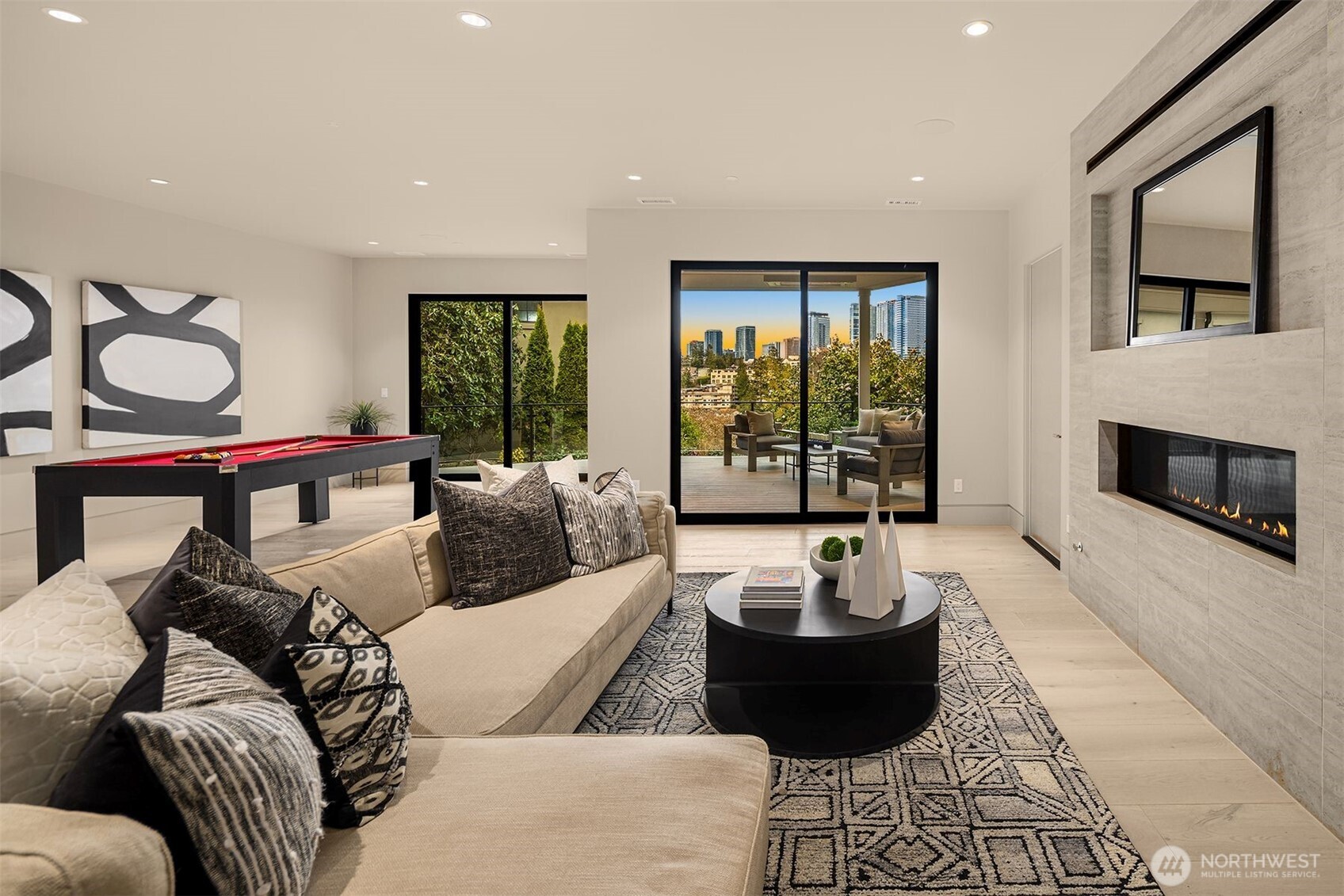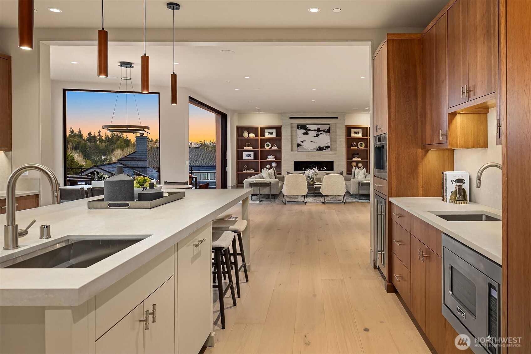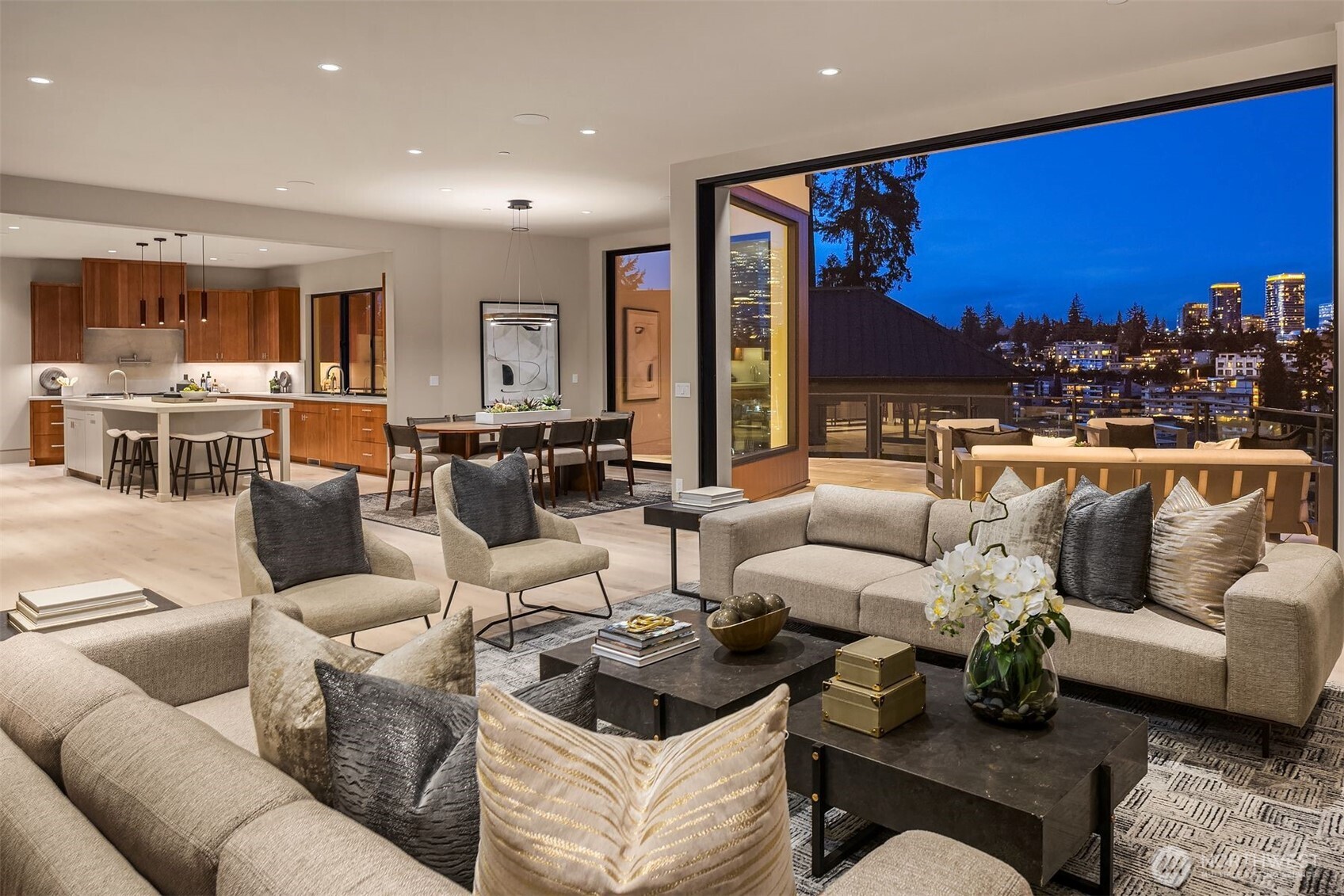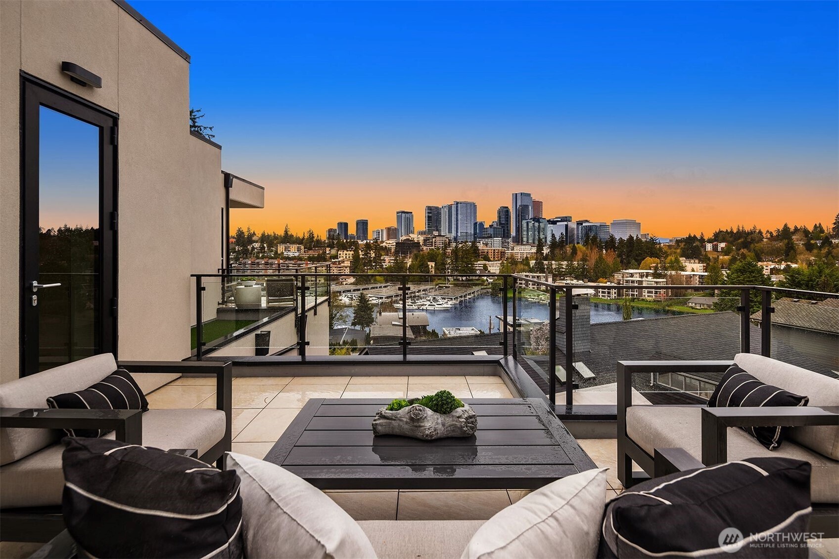 Experience breathtaking views of Lake Washington's Meydenbauer Bay, Marina, and the Bellevue skyline from this masterpiece by Overbrook Construction, located less than a half-mile from Old Main Bellevue. Thoughtfully designed, this architectural marvel blends steel, stone, concrete, glass, and wood to create stunning spaces, including a main-level guest suite, open living areas, and a chef's kitchen with a large island, custom cabinetry, and butler's pantry. The primary suite features sweeping views, a spa-inspired bath, and a bistro-view deck. The lower level offers a media room, wine cellar, and private ADU with full kitchen, and patio entry. Elegance, privacy, and modern sophistication in a prime Bellevue location.